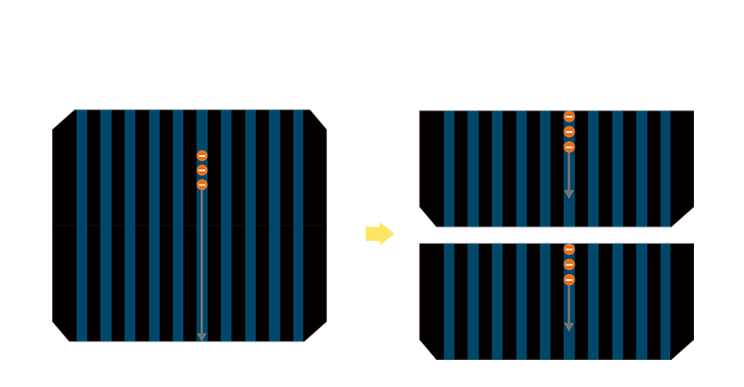 • 結(jié)合半切電池,降低遮陰影響、提升模組抗隱裂能力、并減少電阻損耗,進(jìn)一步提升模組發(fā)電效能。